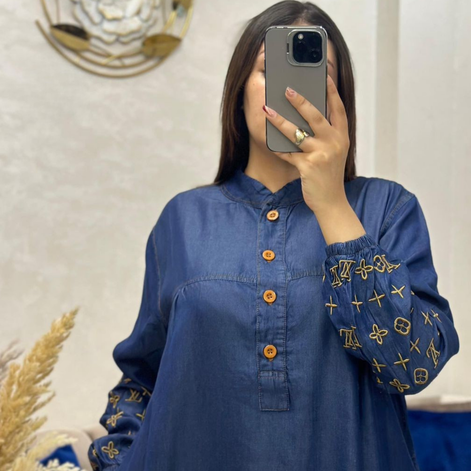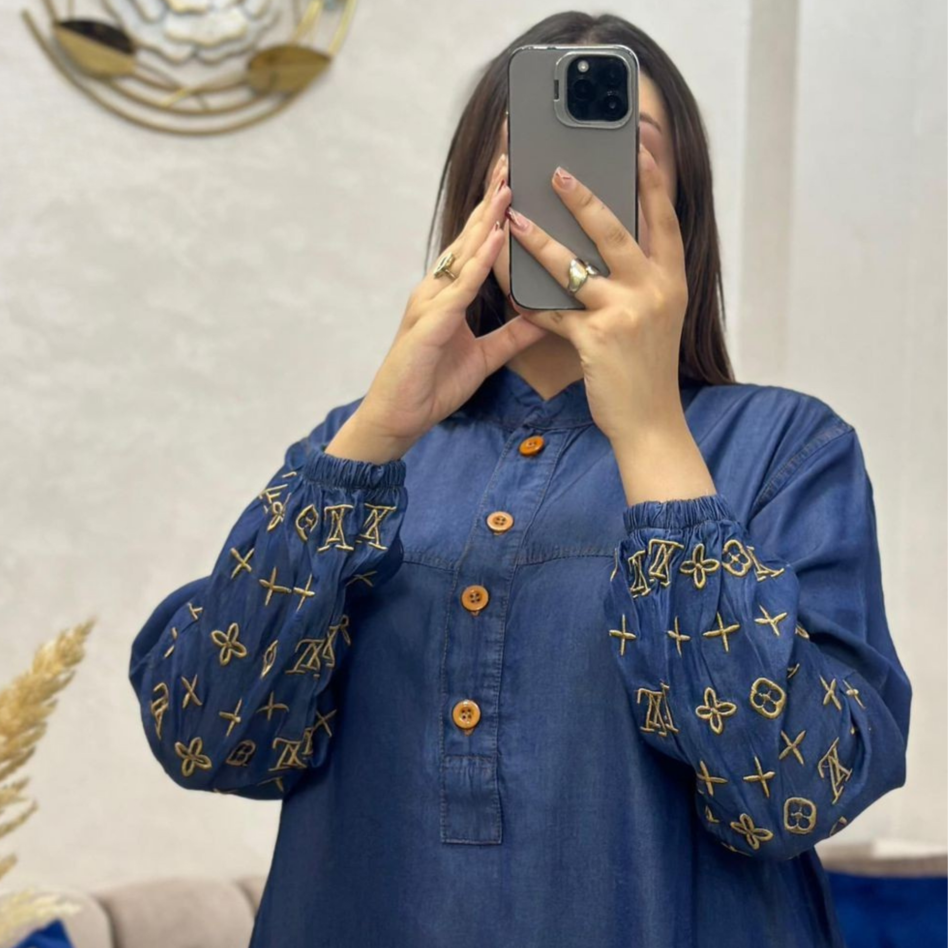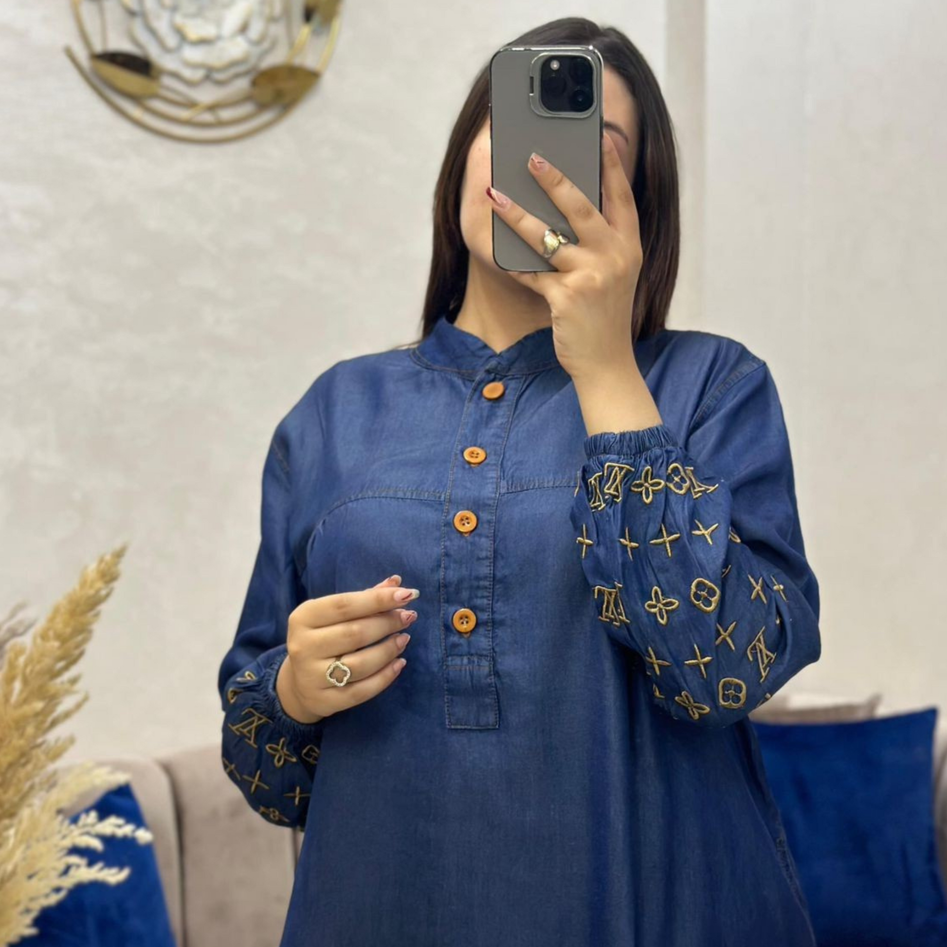 ✔️ أكمام مزينة بتطريز أنيق باللون الذهبي يمنحك طابع مميز وراقي والتوصيل مجاني